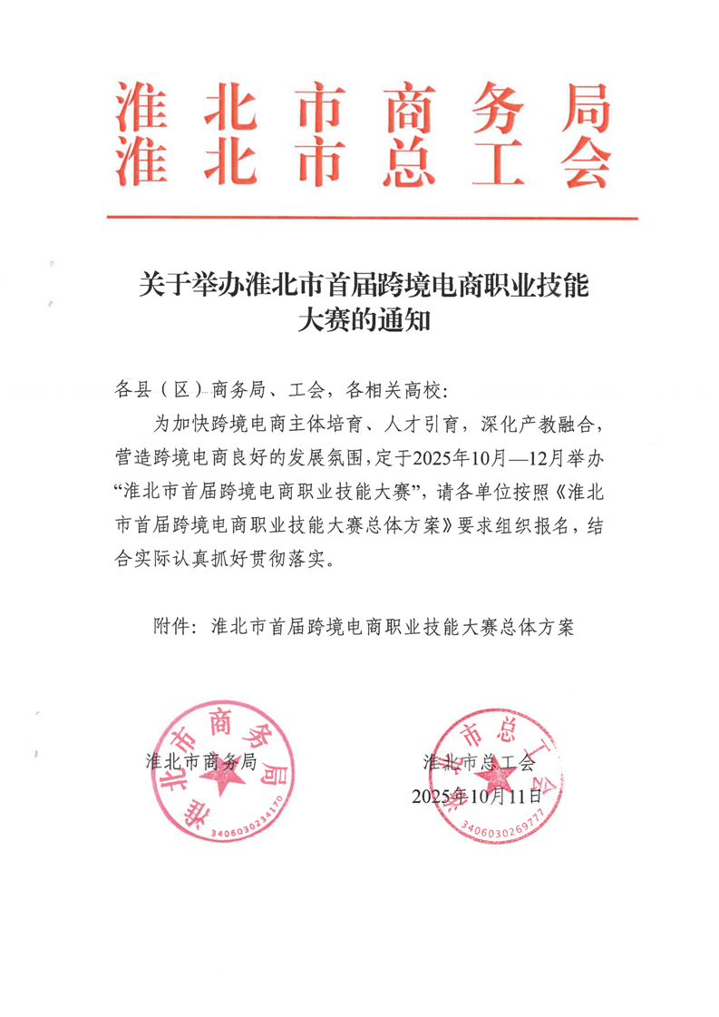 關于舉辦淮北市首屆跨境電商職業技能大賽的通知
